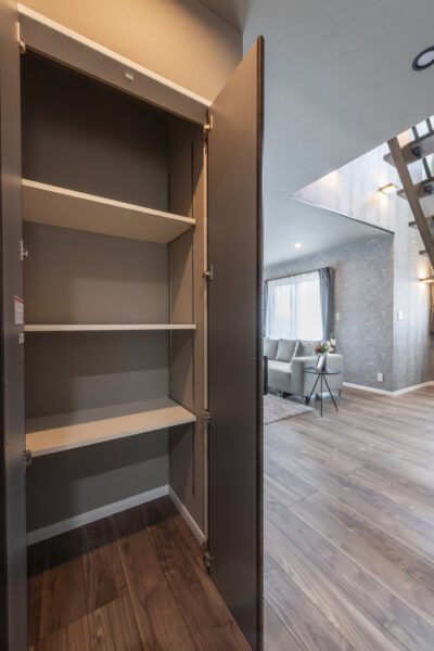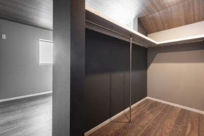 オープンクローゼットを完備し、衣類や書籍、趣味の道具まで、見やすく整理できます。扉がないため出し入れがスムーズで、コーディネートを考えやすいのも魅力です。