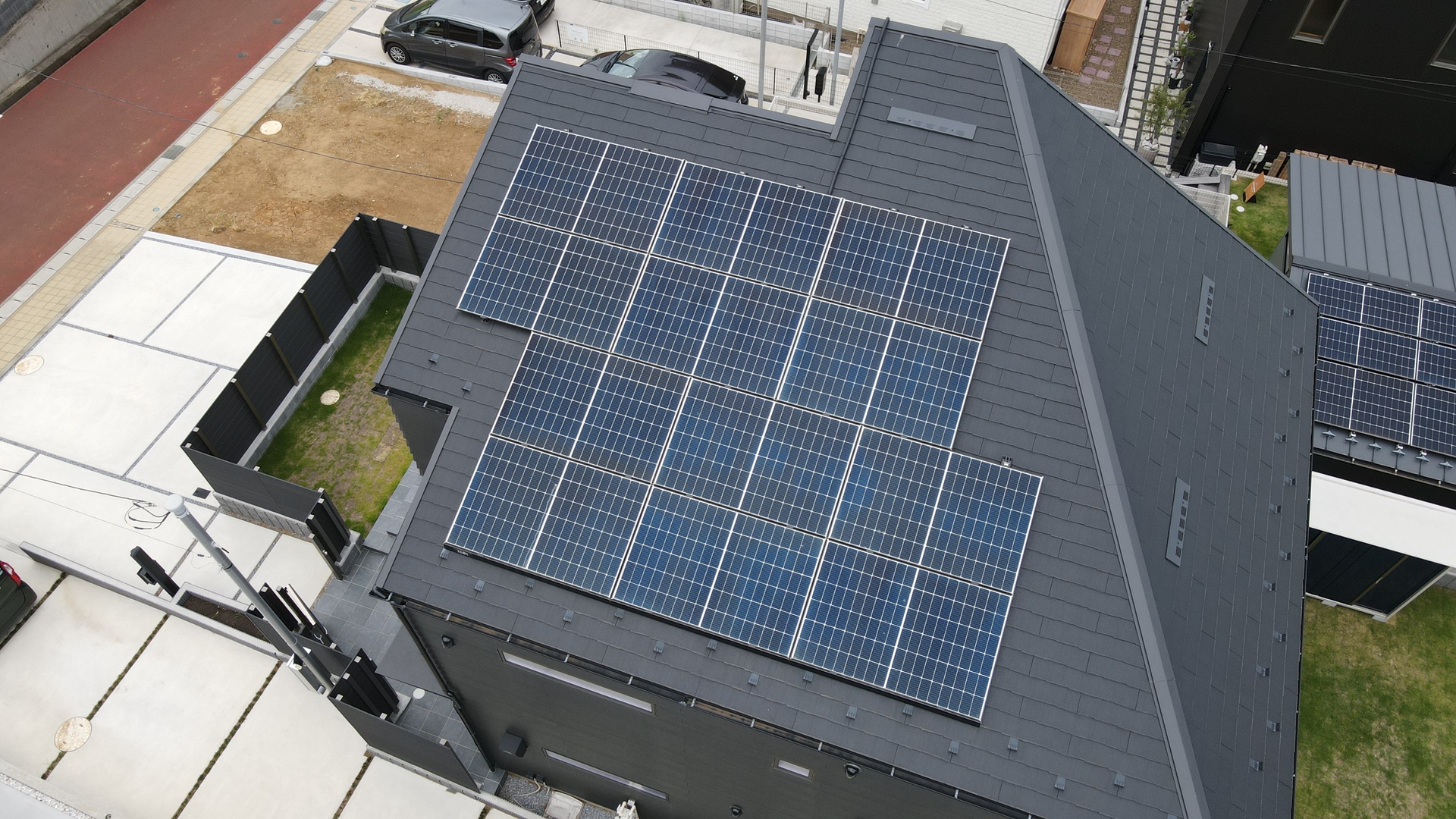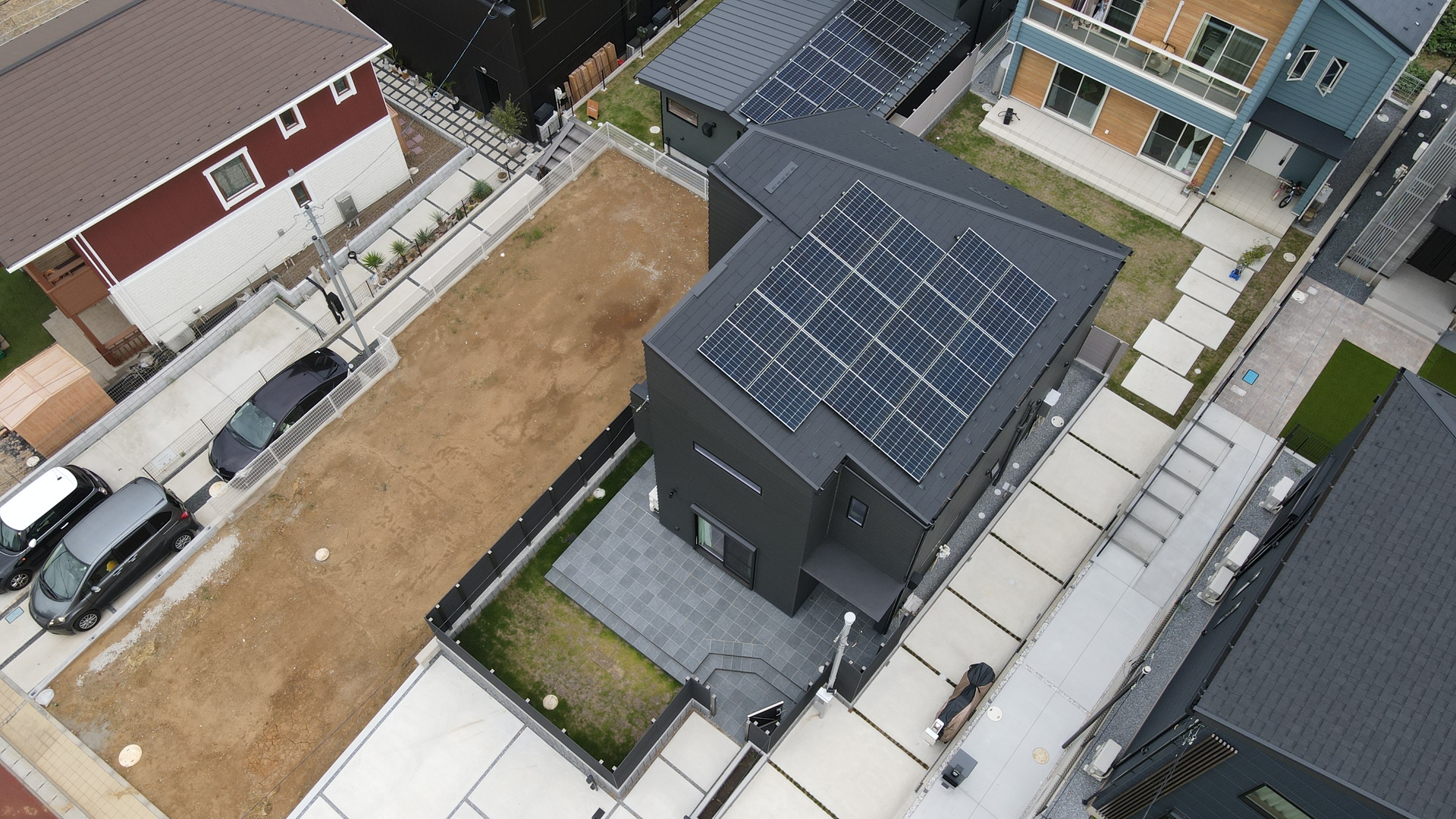 屋根には高出力の太陽光パネルを設置し、屋根面積を最大限に活用した環境配慮型住宅です。4.98kWの発電能力と11.5kWhの蓄電池により、日中に発電した電力を効率的に蓄え、夜間や停電時にも安心して使用できます。エネルギーの自給自足を目指す、これからの時代にふさわしいスマートハウスです。