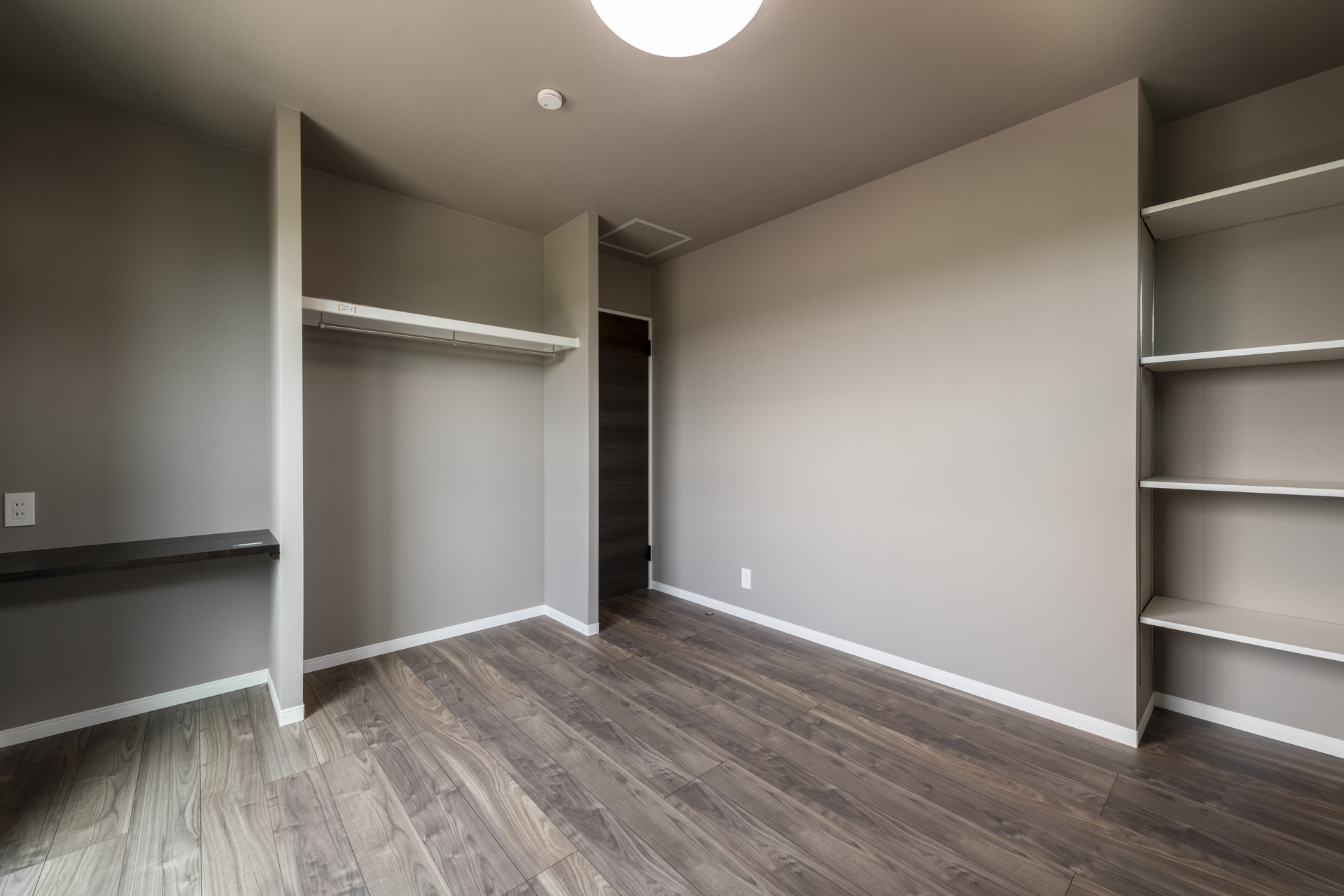 オープンクローゼットを完備し、衣類や書籍、趣味の道具まで、見やすく整理できます。扉がないため出し入れがスムーズで、コーディネートを考えやすいのも魅力です。