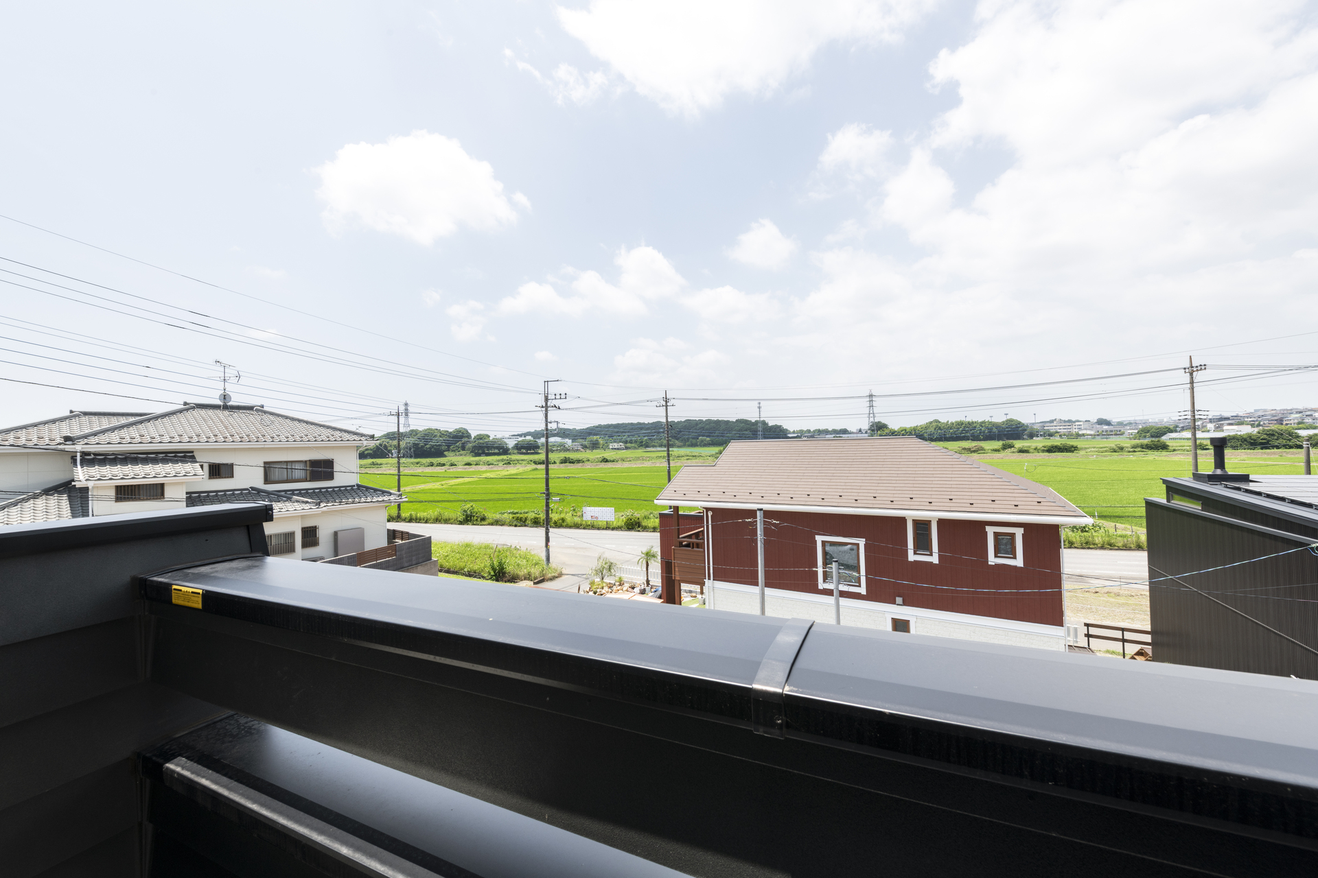 2階には広々としたバルコニーを設置。洗濯物を干すのに十分なスペースを確保しており、大きなシーツや毛布も楽々干せます。晴れた日には、ご家族の1週間分の洗濯物を一気に干すことができる広さです。