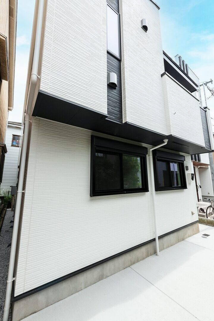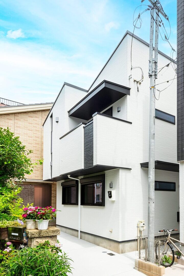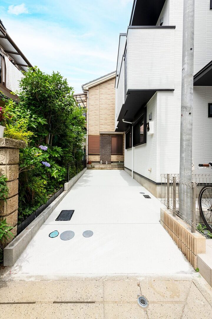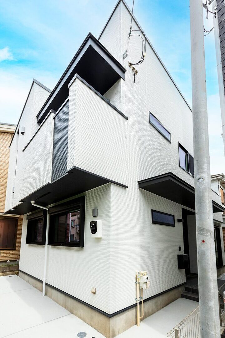 現代的なデザインと機能性を兼ね備えた外観が印象的な新築戸建て。シンプルでモダンな佇まいは、街並みに調和しながらも個性を主張します。直線的なラインを基調としたフォルムは、飽きのこない洗練された美しさを持ち、長く愛される住まいの表情を作り出しています。