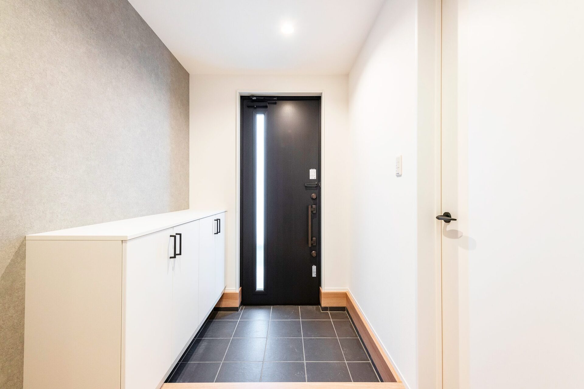玄関ドアは断熱性能の高い複層ガラスを採用。カードキーで解錠するスマートロックで、鍵を取り出すことなく施錠・開錠が可能。防犯性にも優れており、ご家族の安全を守ります。