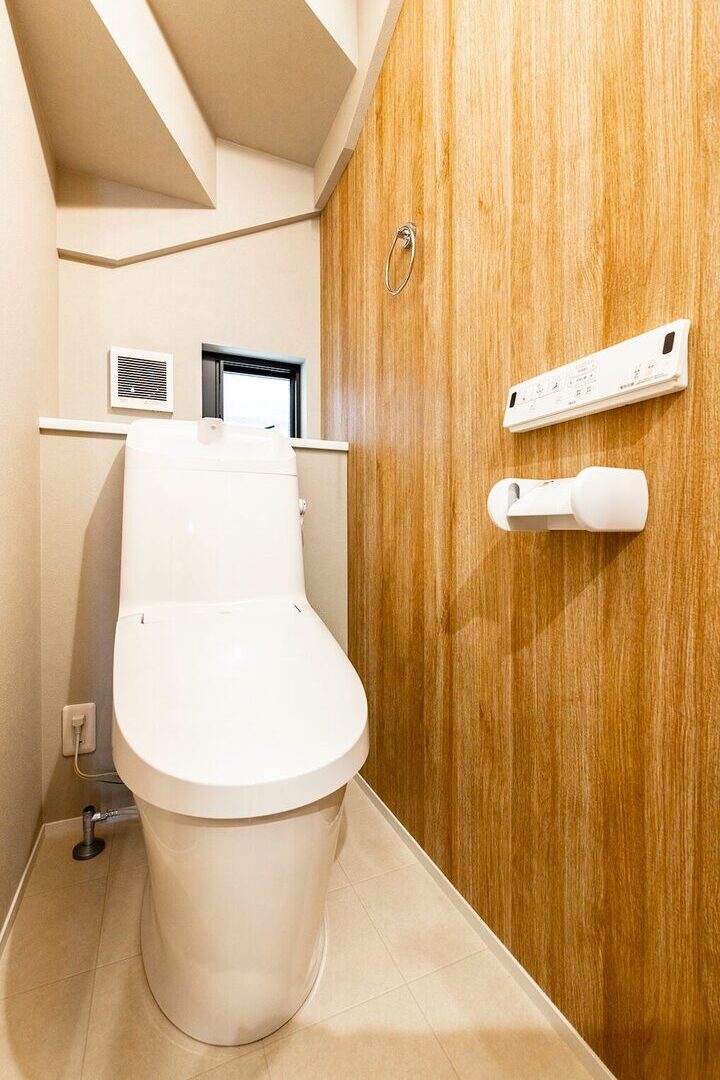 タンクレス風のすっきりとしたデザインが、トイレ空間を広く見せます。温水洗浄便座を標準装備し、快適な使い心地を提供します。節水型の便器で、環境にも家計にも優しい設計です。