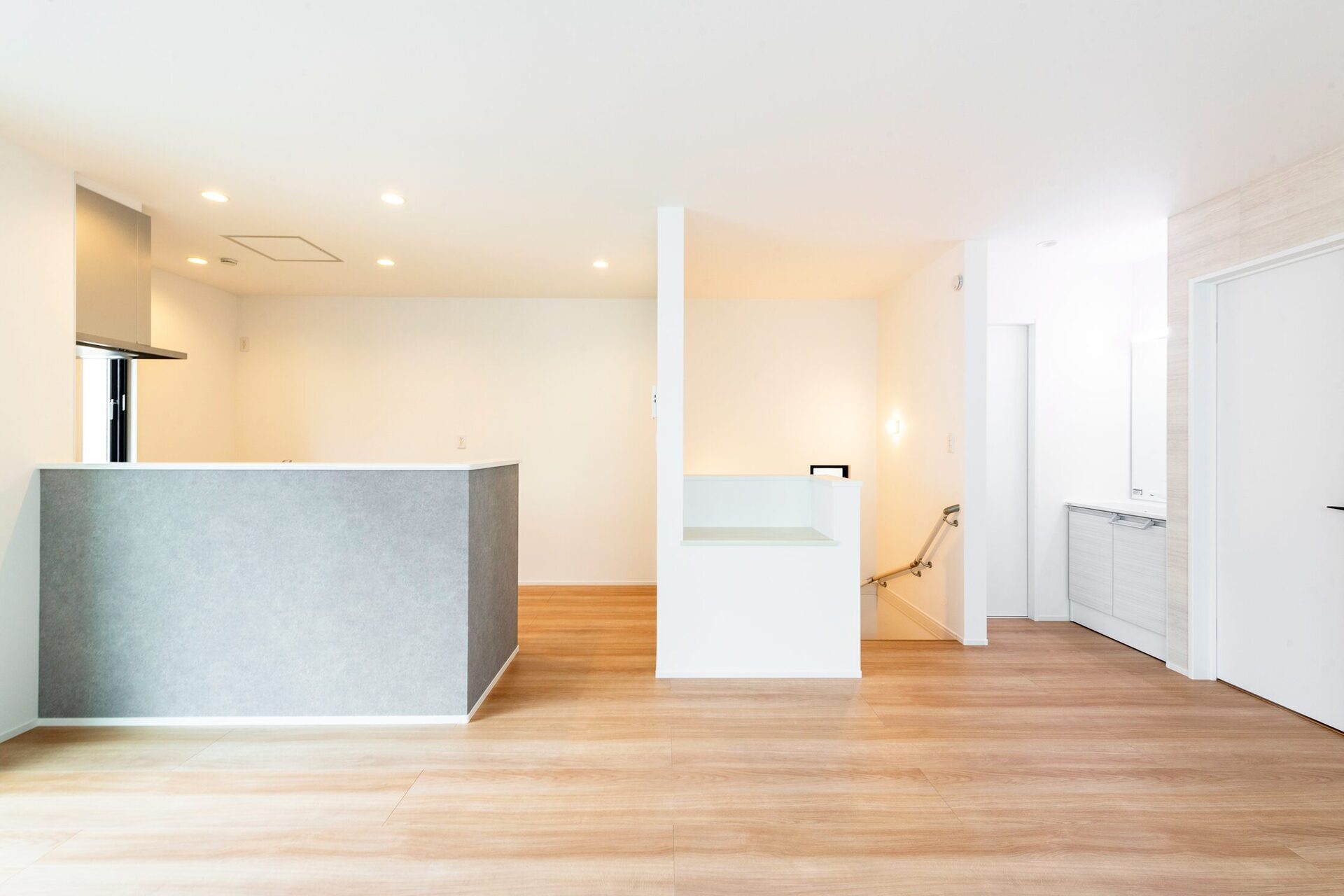 リビング、ダイニング、キッチンが一体となった間取りで、家族のコミュニケーションが自然と生まれます。キッチンで料理をしながら家族の様子を見守ることができ、お子様が遊ぶ姿を確認しながら家事を進められる安心設計です。