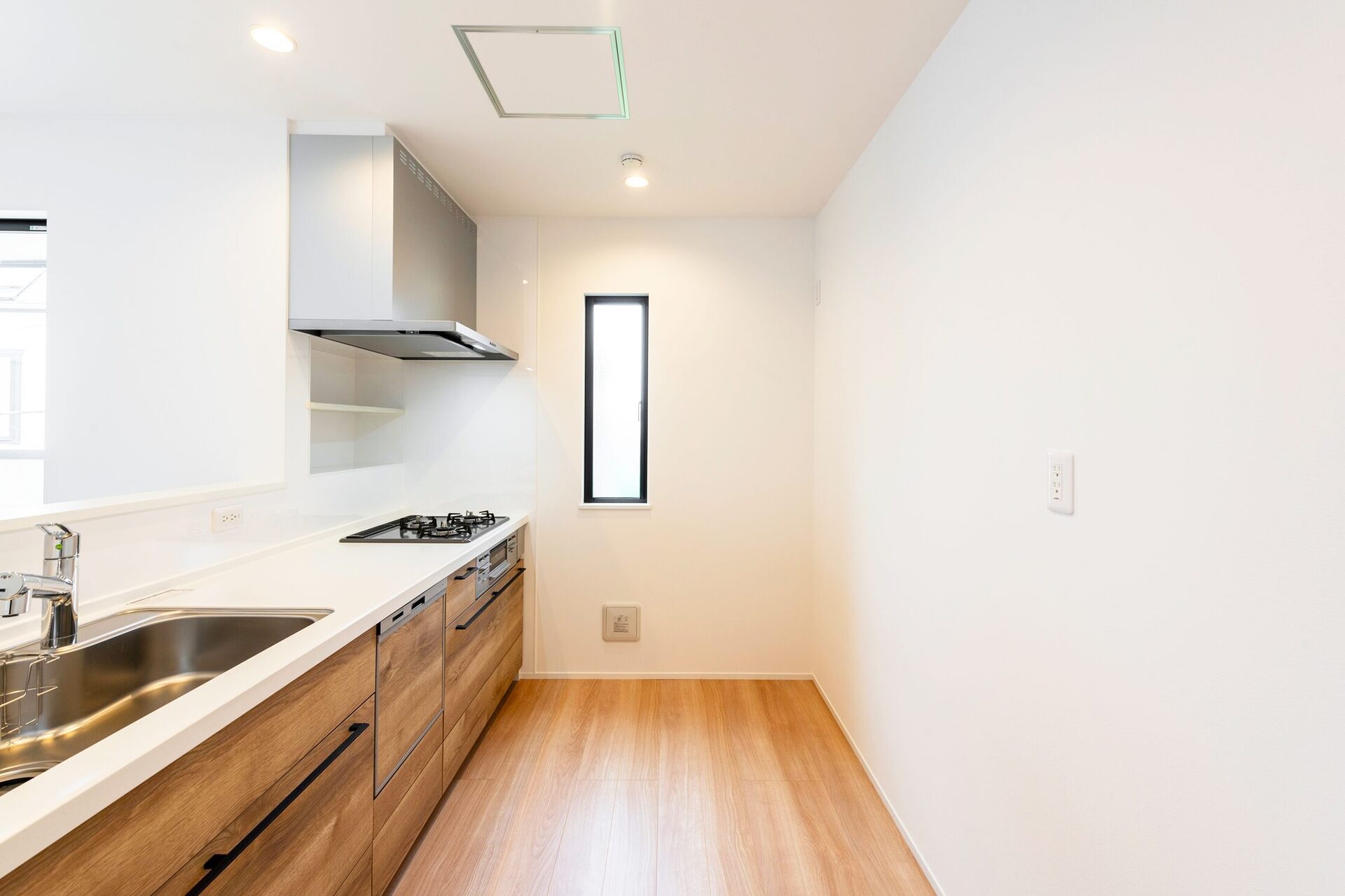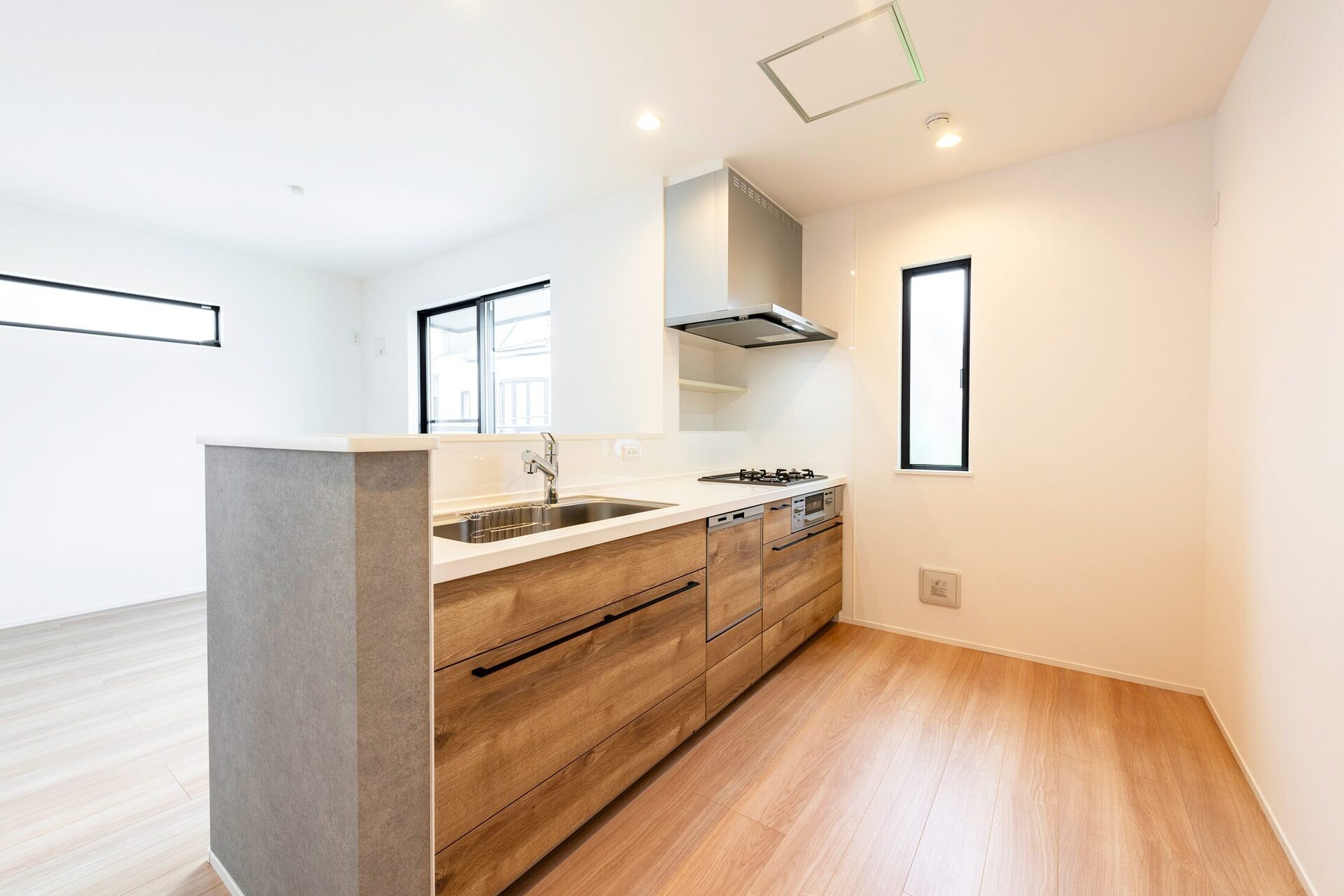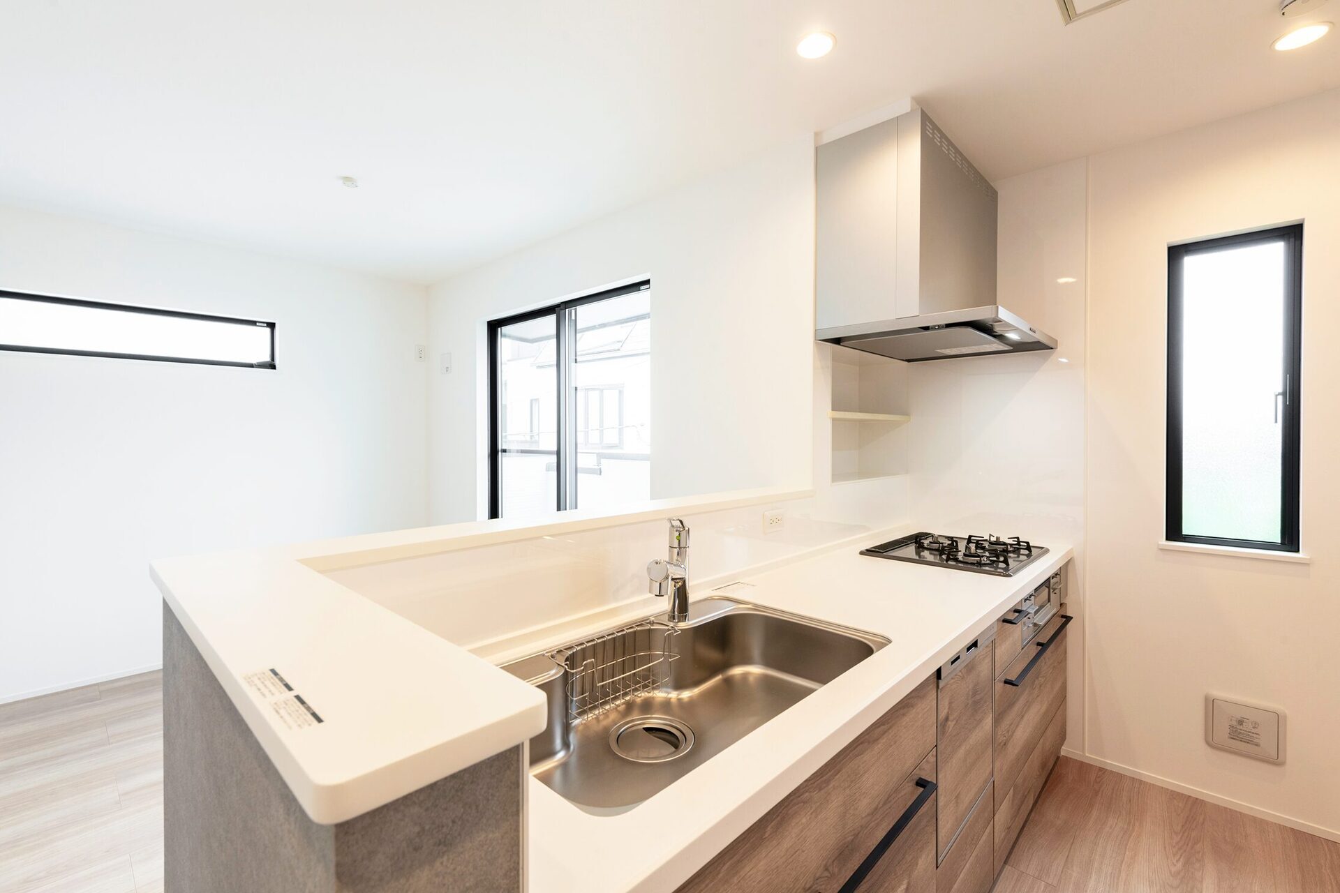 3口ビルトインコンロは、複数の料理を同時進行できる実用性の高さが魅力。食器洗い乾燥機を標準装備しているため、食後の片付けが驚くほど楽になります。