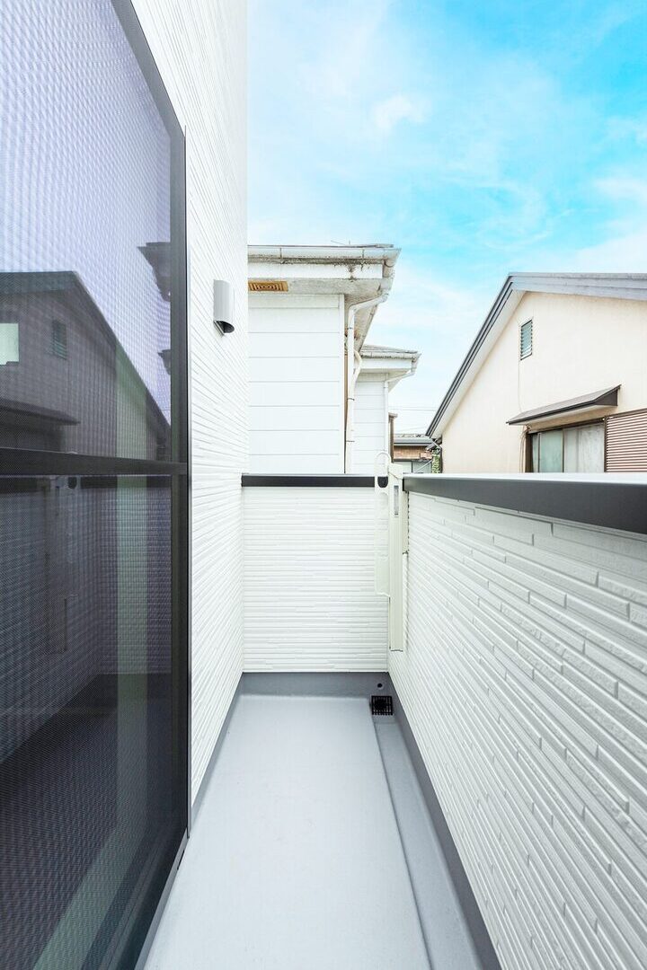 2階には広々としたバルコニーを設置。洗濯物を干すのに十分なスペースを確保しており、大きなシーツや毛布も楽々干せます。