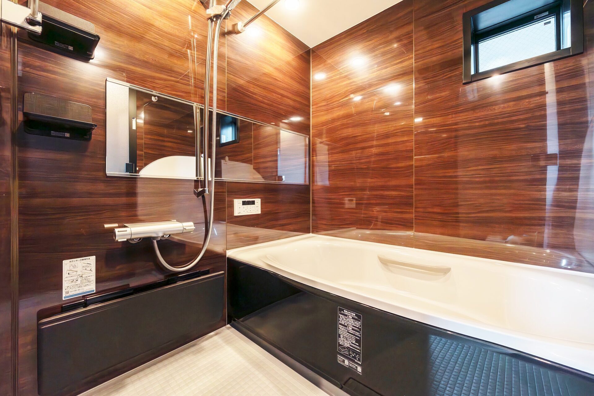 バスルームは、まるでホテルのような落ち着いた雰囲気。濃淡が生み出す陰影が、リラックス効果を高め、一日の疲れを優しく癒してくれます。