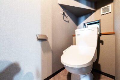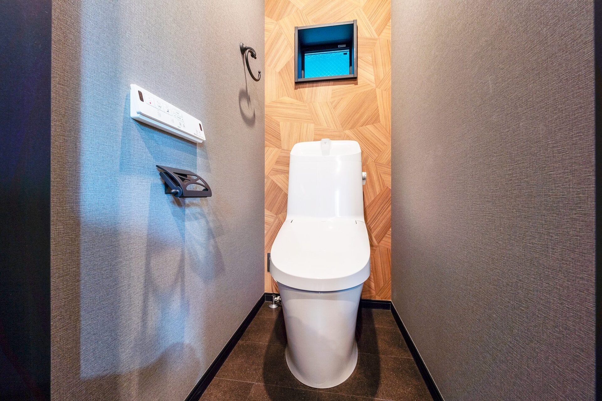 コンパクトながら圧迫感のない設計で、快適に使用できます。手洗いカウンター付きで、使い勝手も良好。ダウンライトの柔らかな光が、落ち着いた雰囲気を演出します。