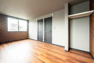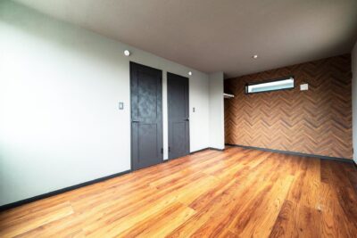 チャコールブラックの建具が空間を引き締め、落ち着いた雰囲気を演出。寝室として使う場合は、質の高い睡眠をサポートする静かで落ち着いた環境に。ワークスペースとして使う場合は、集中力を高める空間として機能します。在宅ワークが増えた現代において、仕事とプライベートを切り分けられる専用スペースがあることは、大きな価値となるでしょう。