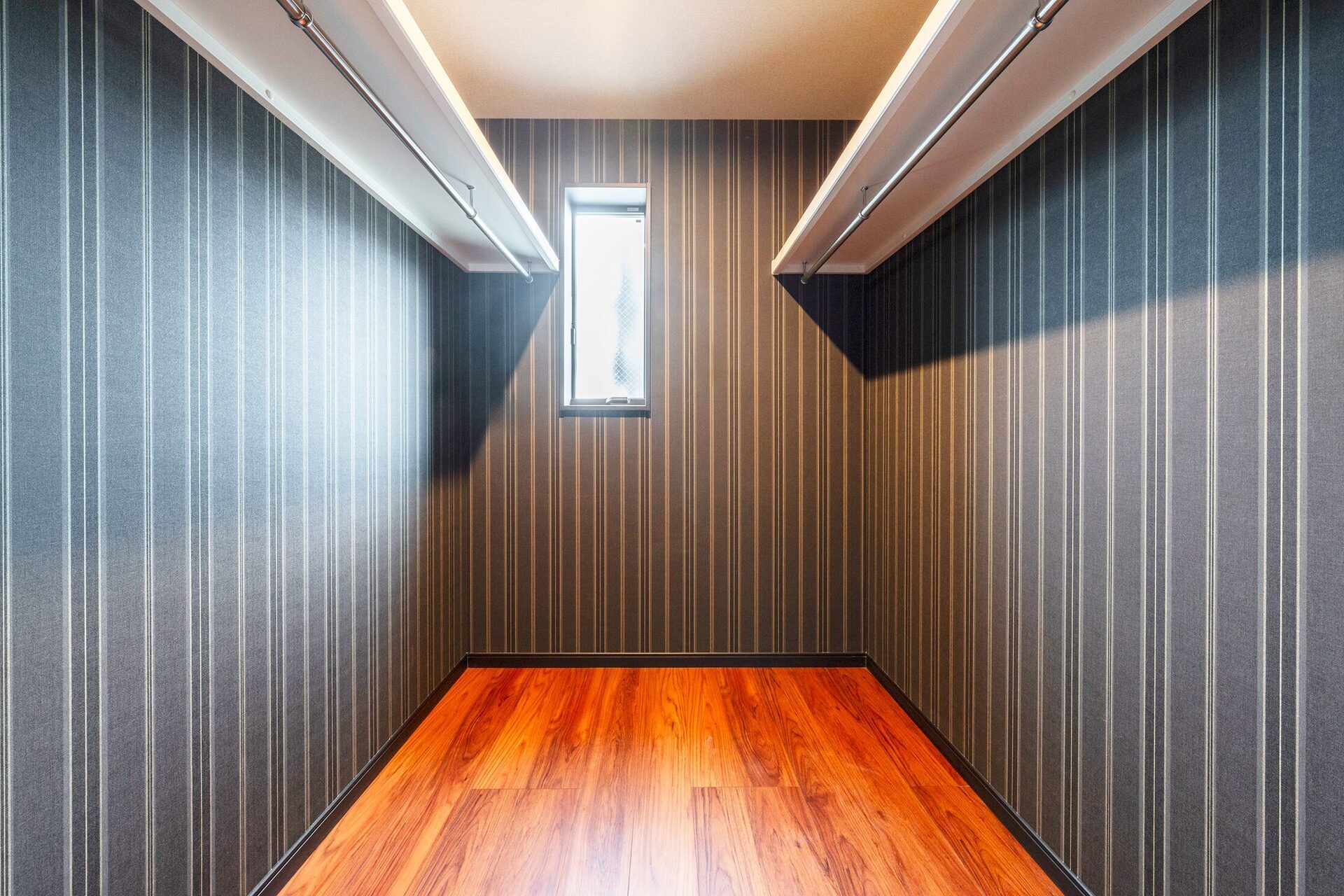 約9.2帖のメインルームには、オープンウォークインクローゼットを併設。扉のないオープンタイプなので、朝の身支度がスムーズで、コーディネートも一目で確認できます。季節の衣類や小物をたっぷりと収納でき、寝室をすっきりと保てる機能的な空間です。