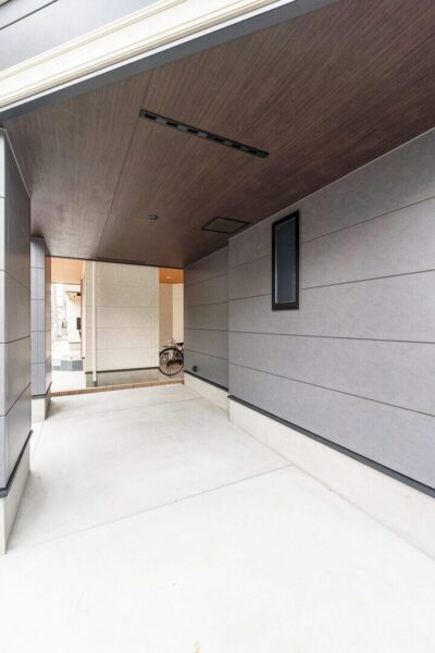 駐車スペースを1階に設けることで、都市生活の利便性も確保。車やバイク、自転車を安心して置けるスペースは、都市型住宅において大きなアドバンテージです。