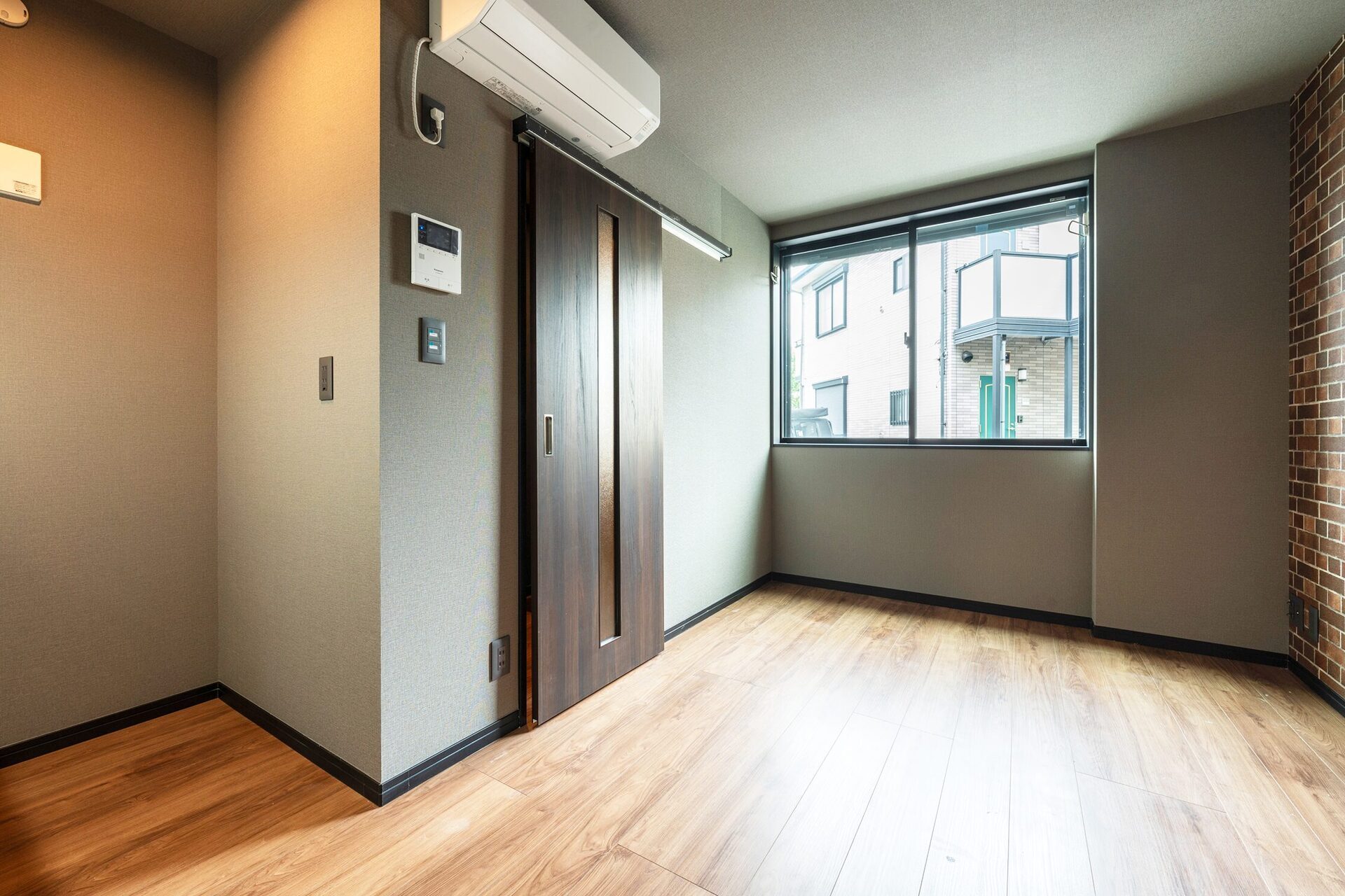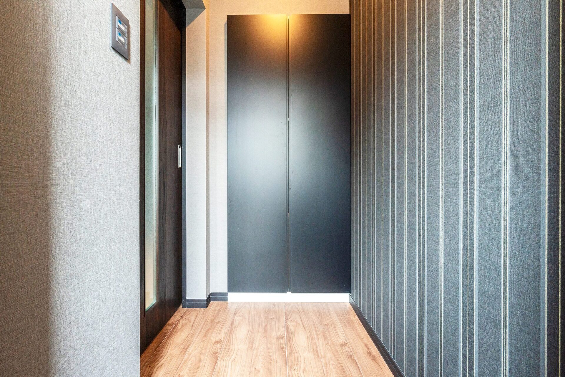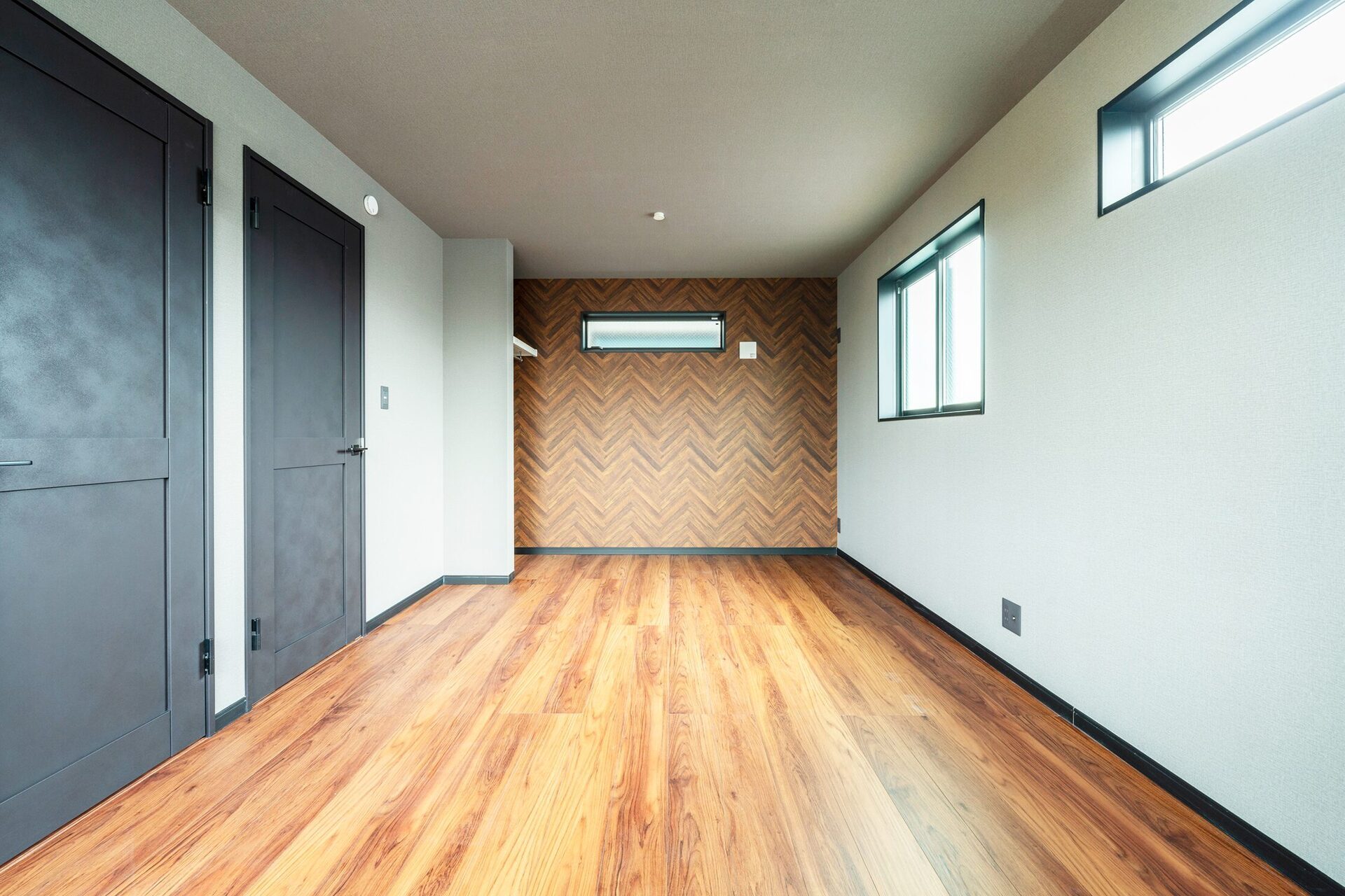 チャコールブラックの建具が空間を引き締め、落ち着いた雰囲気を演出。寝室として使う場合は、質の高い睡眠をサポートする静かで落ち着いた環境に。ワークスペースとして使う場合は、集中力を高める空間として機能します。在宅ワークが増えた現代において、仕事とプライベートを切り分けられる専用スペースがあることは、大きな価値となるでしょう。