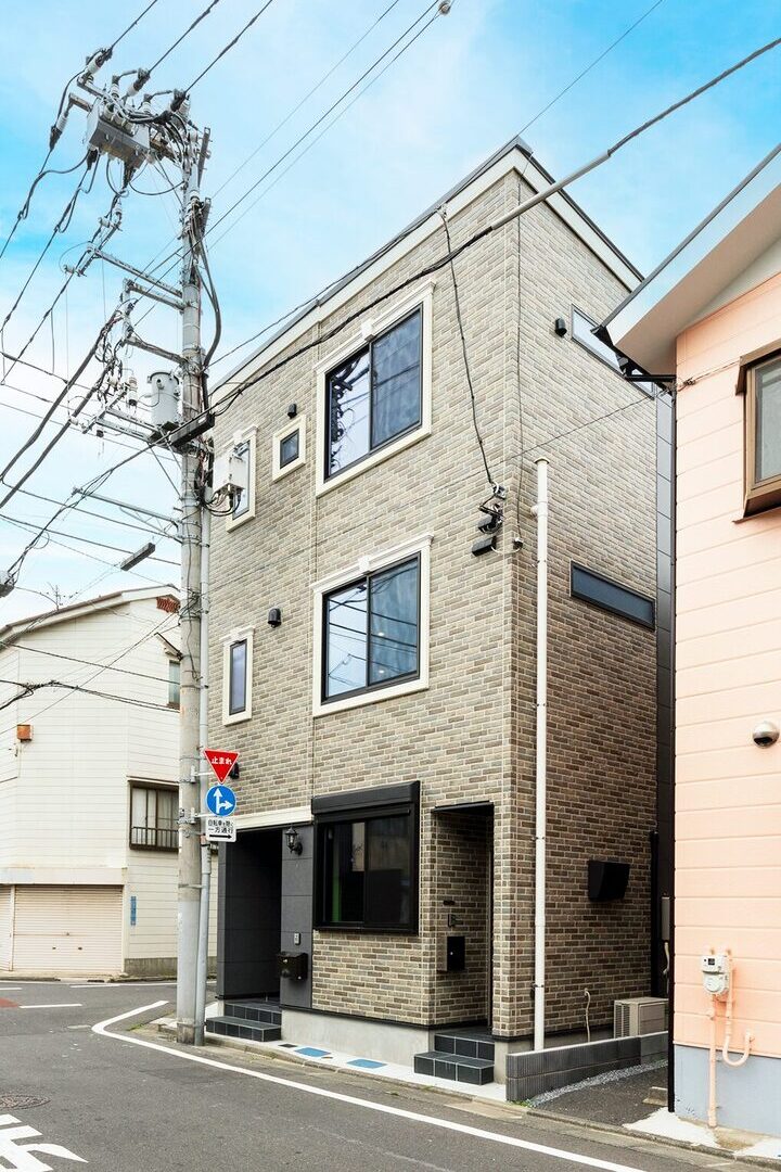 3階建ての縦のプロポーションは、限られた敷地を有効活用しながらも、圧迫感を感じさせない計算されたデザイン。夜になると、窓から漏れる光が建物に表情を与え、街の風景を彩ります。シンプルでありながら存在感のある佇まいは、周囲の街並みに溶け込みながらも、確かな個性を主張しています。
