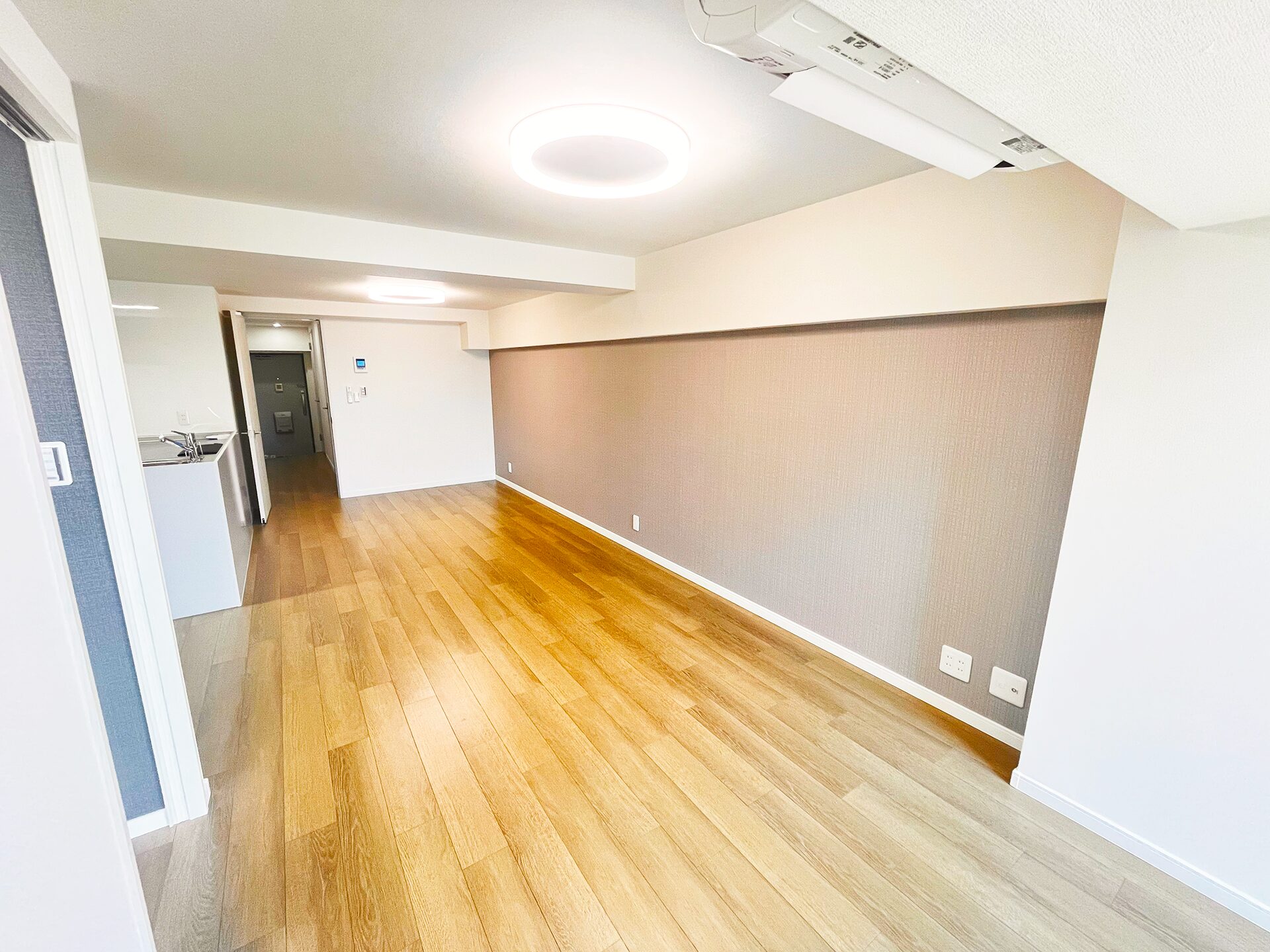 カーペットから明るい木目フローリングに張替え。白い壁とクローゼットで、清潔感のある快適な居室に生まれ変わりました。